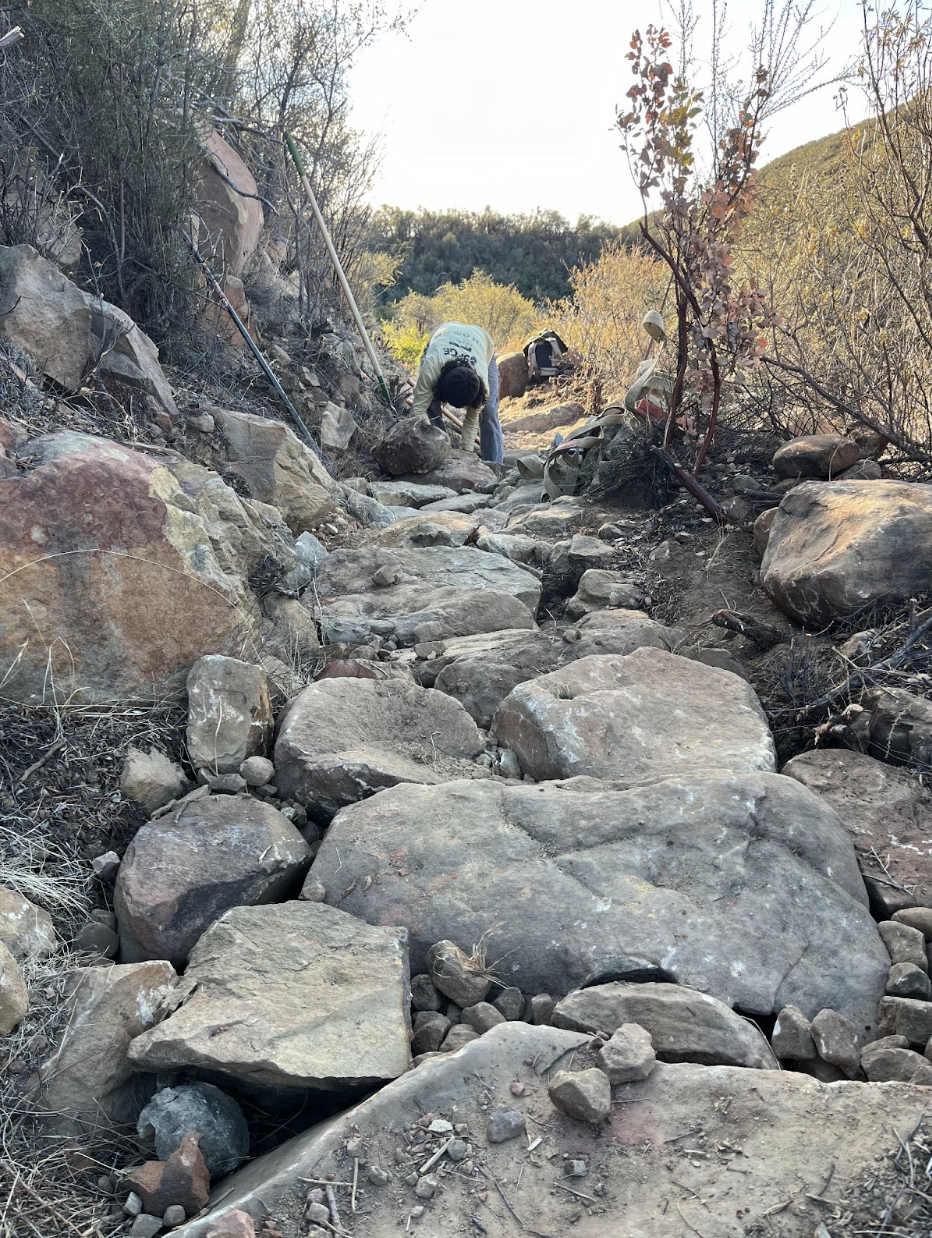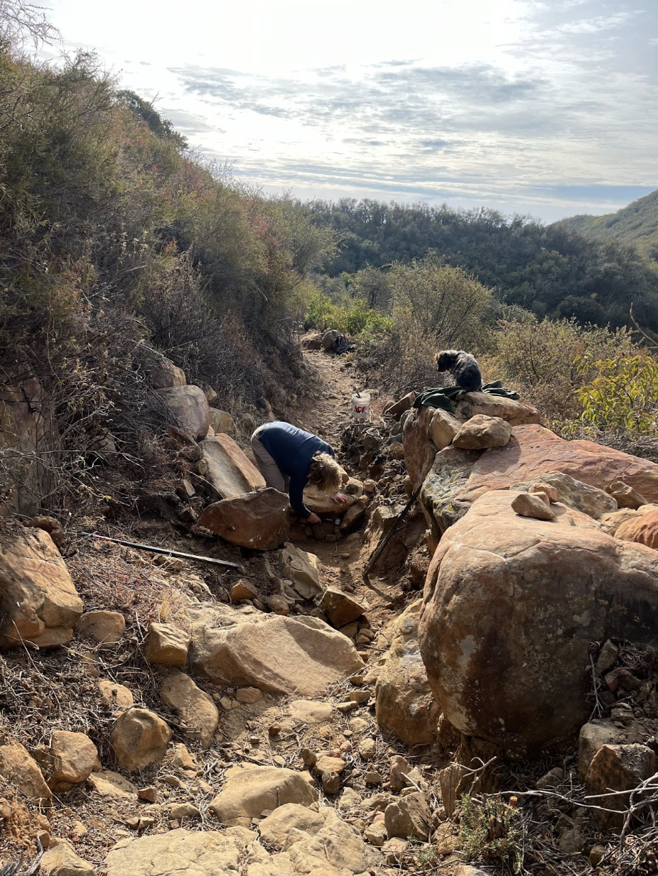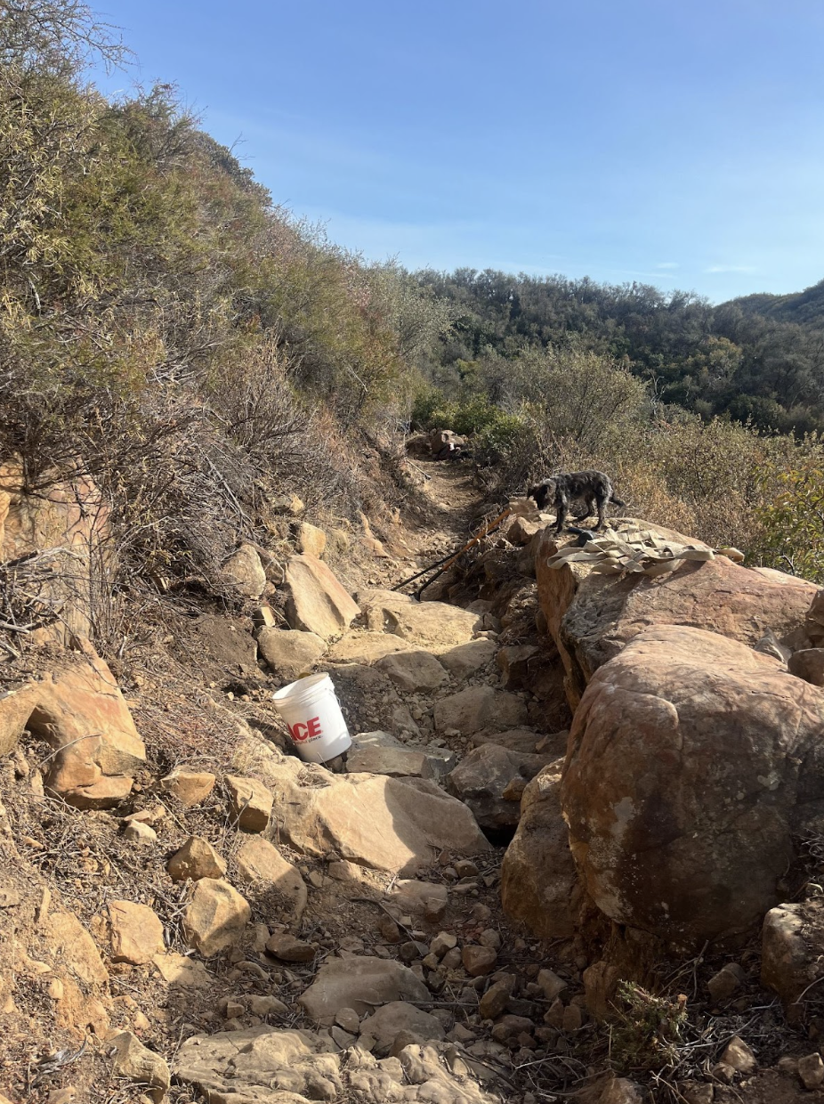 A true Santa Barbara Classic, Tunnel was constructed for the Gibraltar Dam and Mission Tunnel construction operations completed in 1920. Nowadays, it’s known for being one of the more difficult trails in the area, featuring rewarding views of town and the ephemeral Mission Falls. While always top of mind for SAGE, and in rotation since our founding, this most recent effort involved over two months and 500 hours retrofitting trail armoring and drainage features to ensure the legendary trail will be around for years to come.