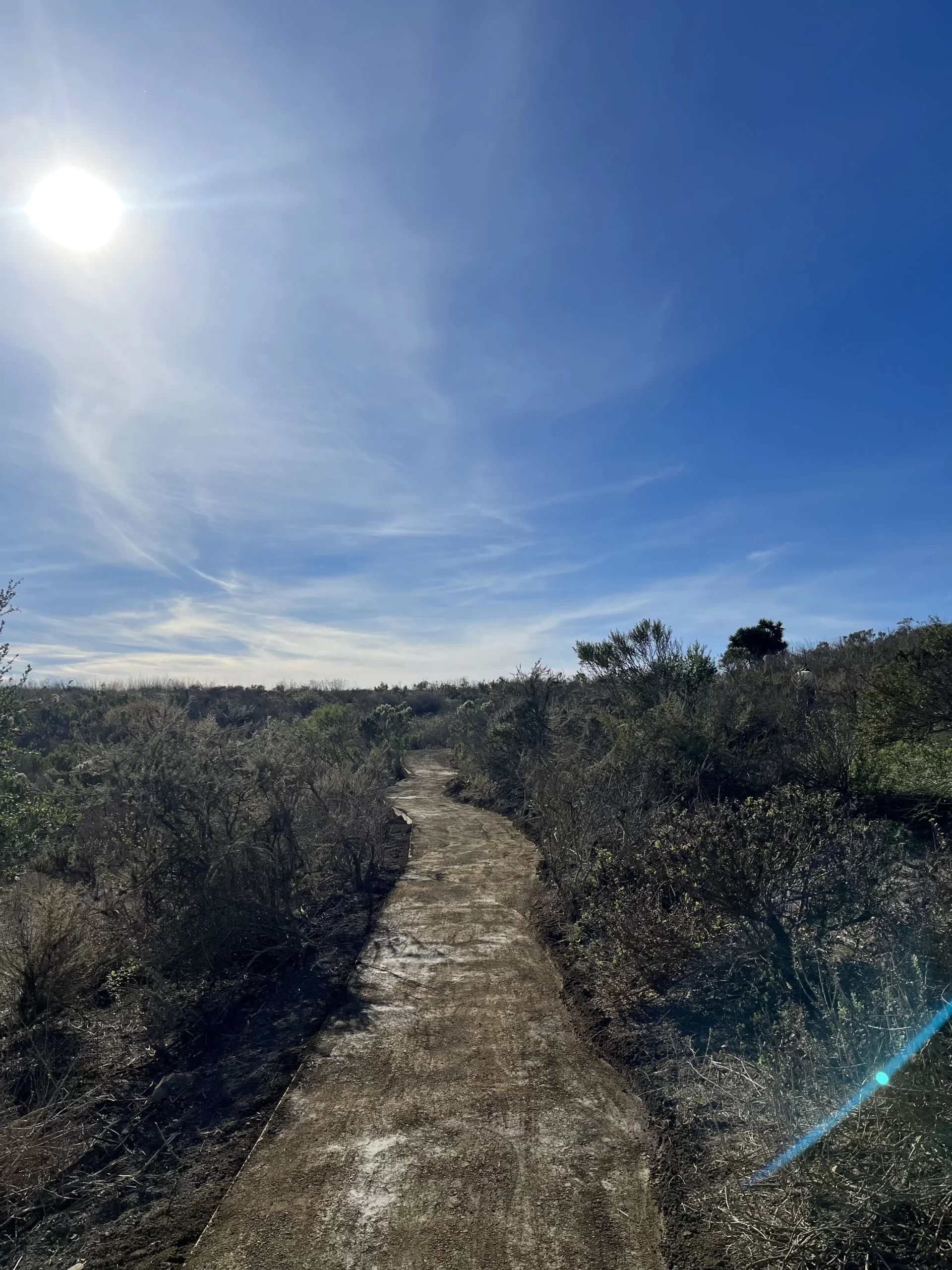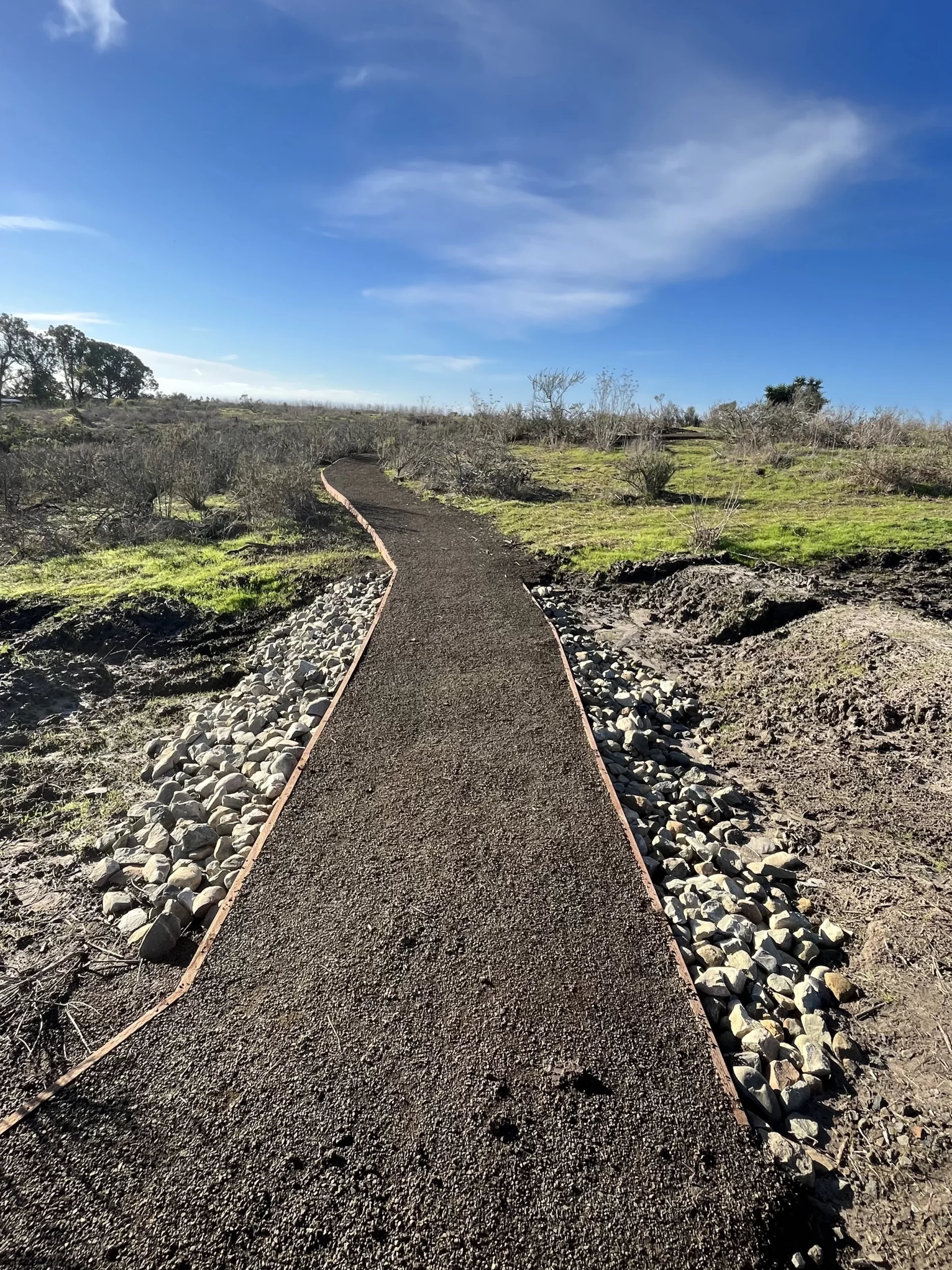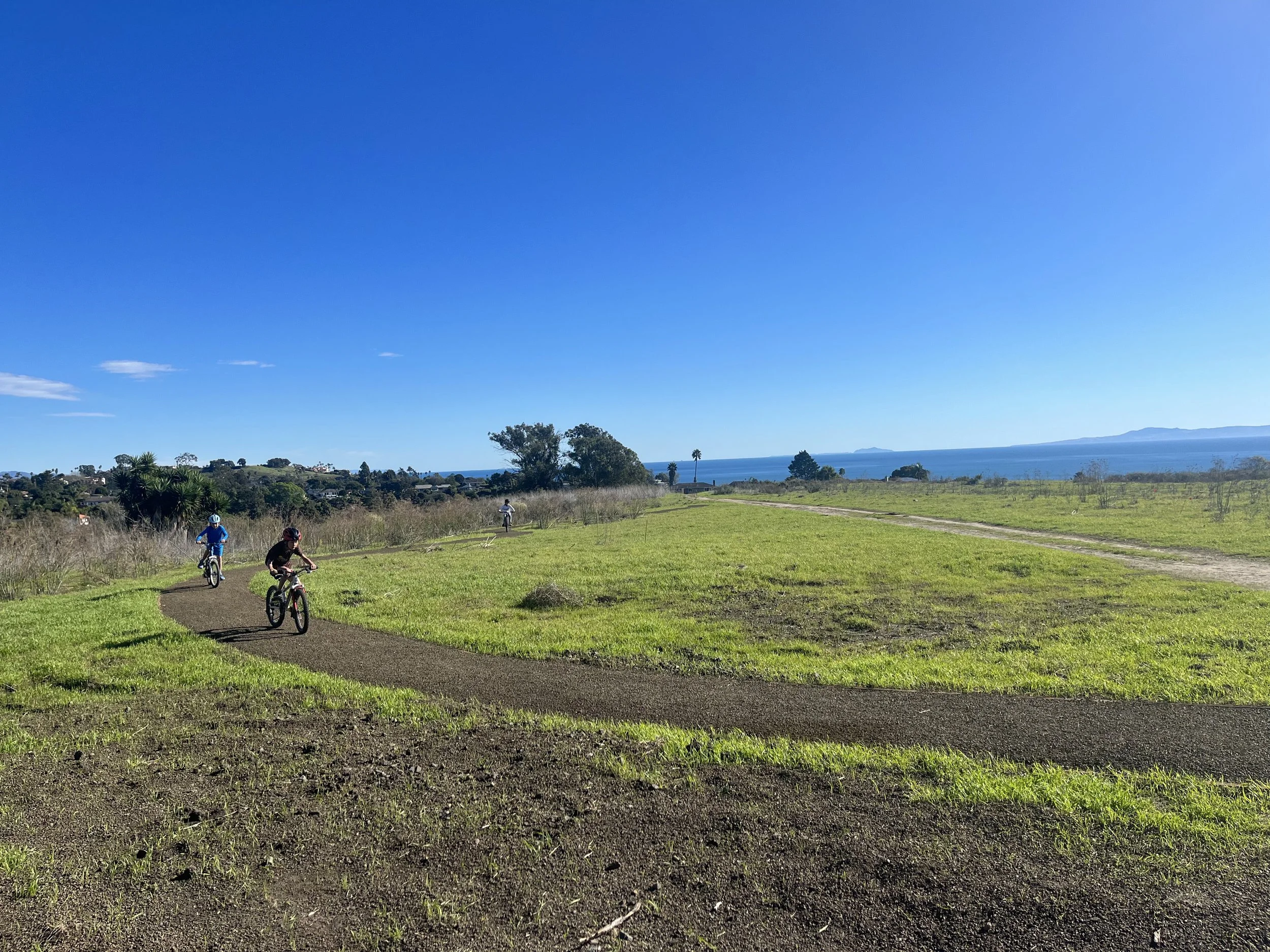 Around a third of a mile each way, this path connects to the sidewalk at the dead end of Calle Montilla and works its way up to the Moser Meadow overlook and seating area at the top of Elings Park. Featuring imported material for hard surfacing, a play area for children, and impressive views of the ocean and Santa Ynez Range, this path was designed with very little grade to be friendly for all mobility levels and wheels from strollers to strider bikes. Experience beautiful sagebrush habitat and a native plant restoration project coordinated by the Santa Barbara Botanic Garden along the way.